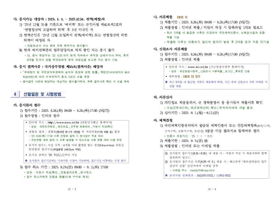 2025년 후반기 해군 예비전력관리 업무담당자 선발 공고문.hwp