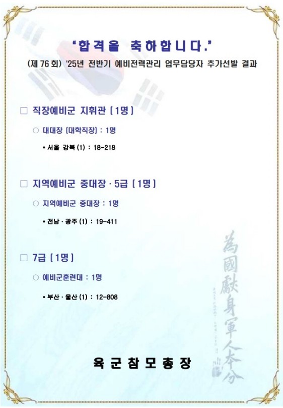 25년 전반기(76회) 예비전력관리 업무담당자 추가선발(합격) 사진new