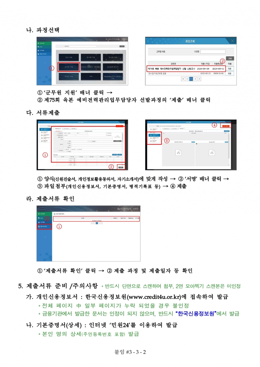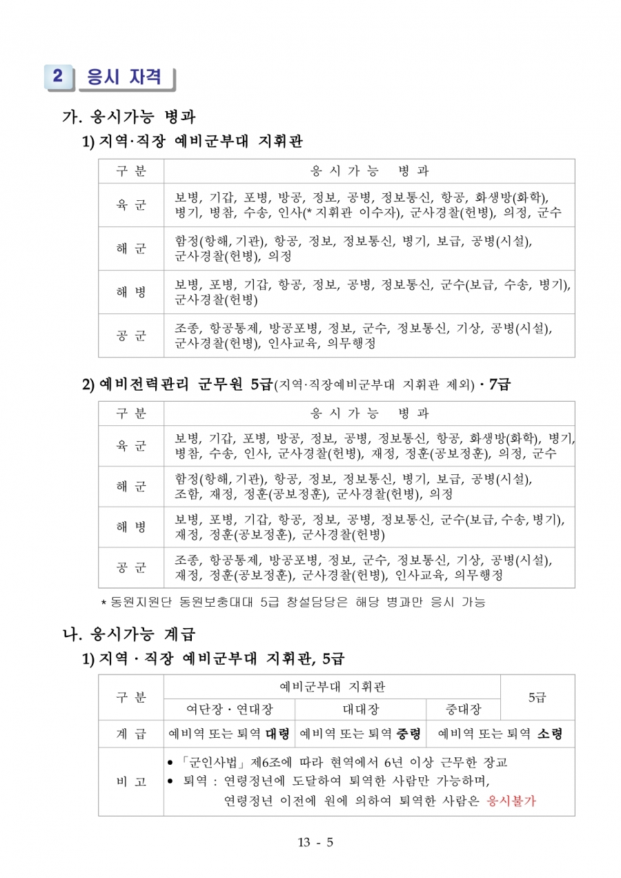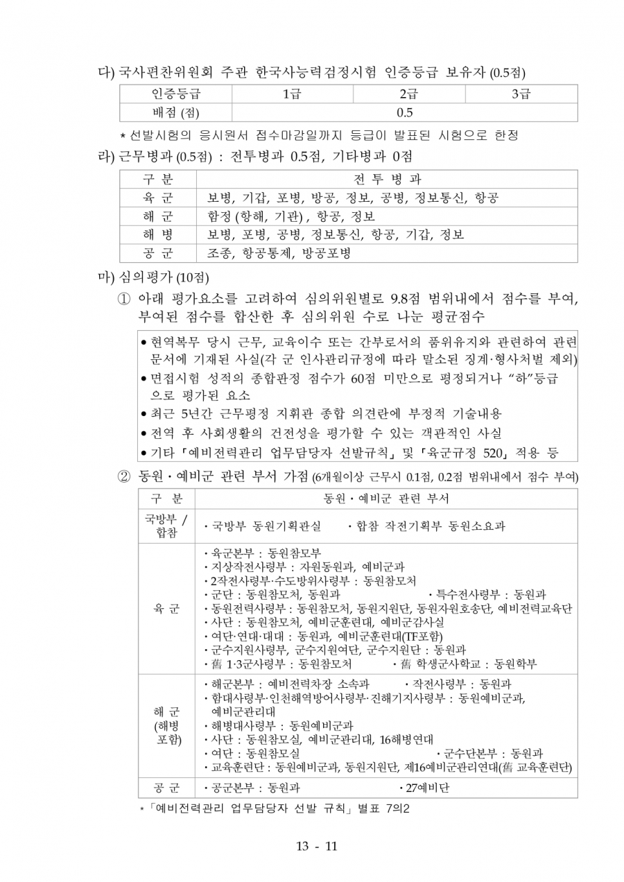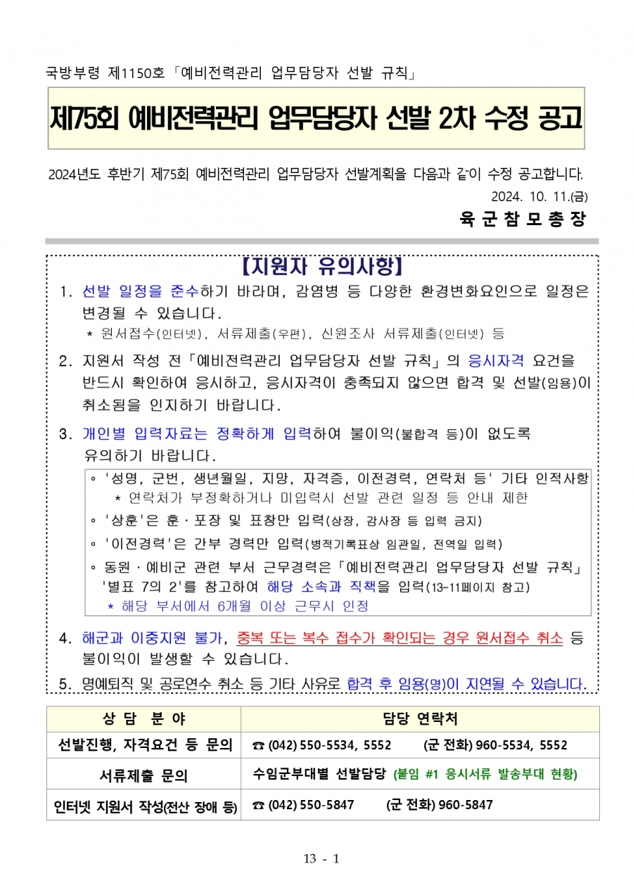 75회 육군 예비전력업무담당자 2차 수정공고