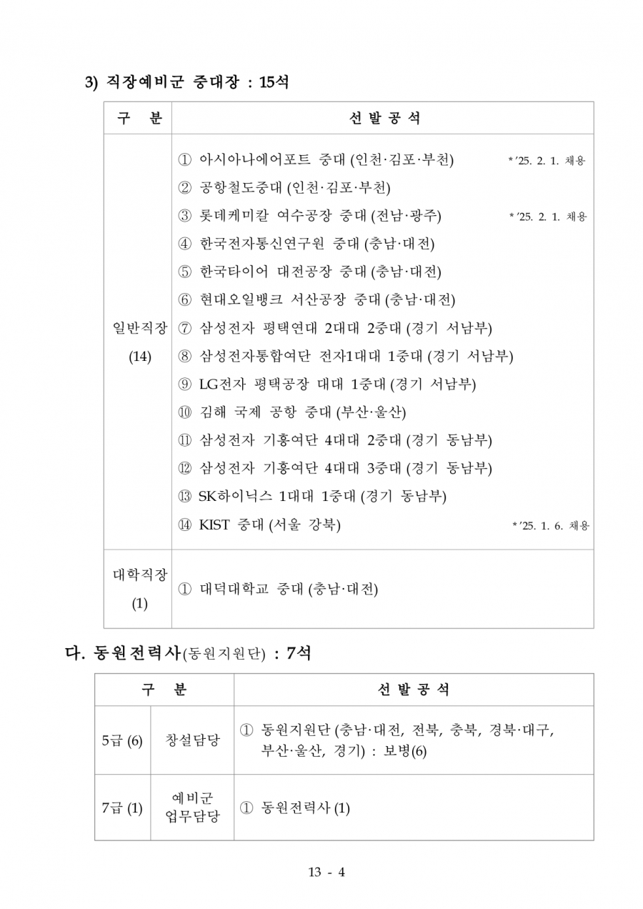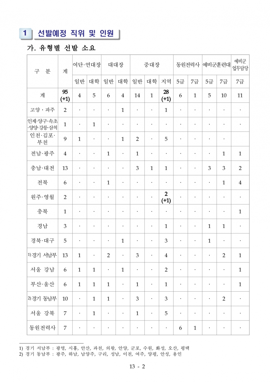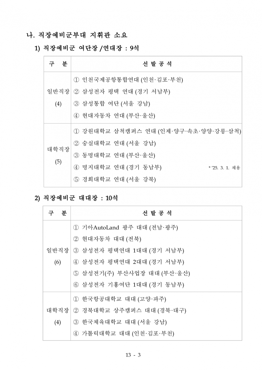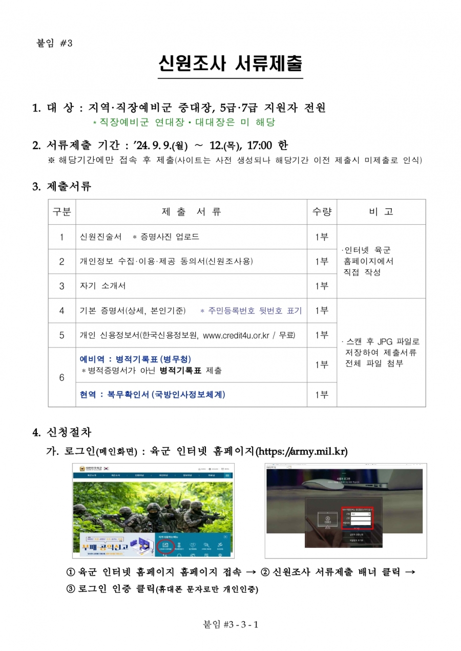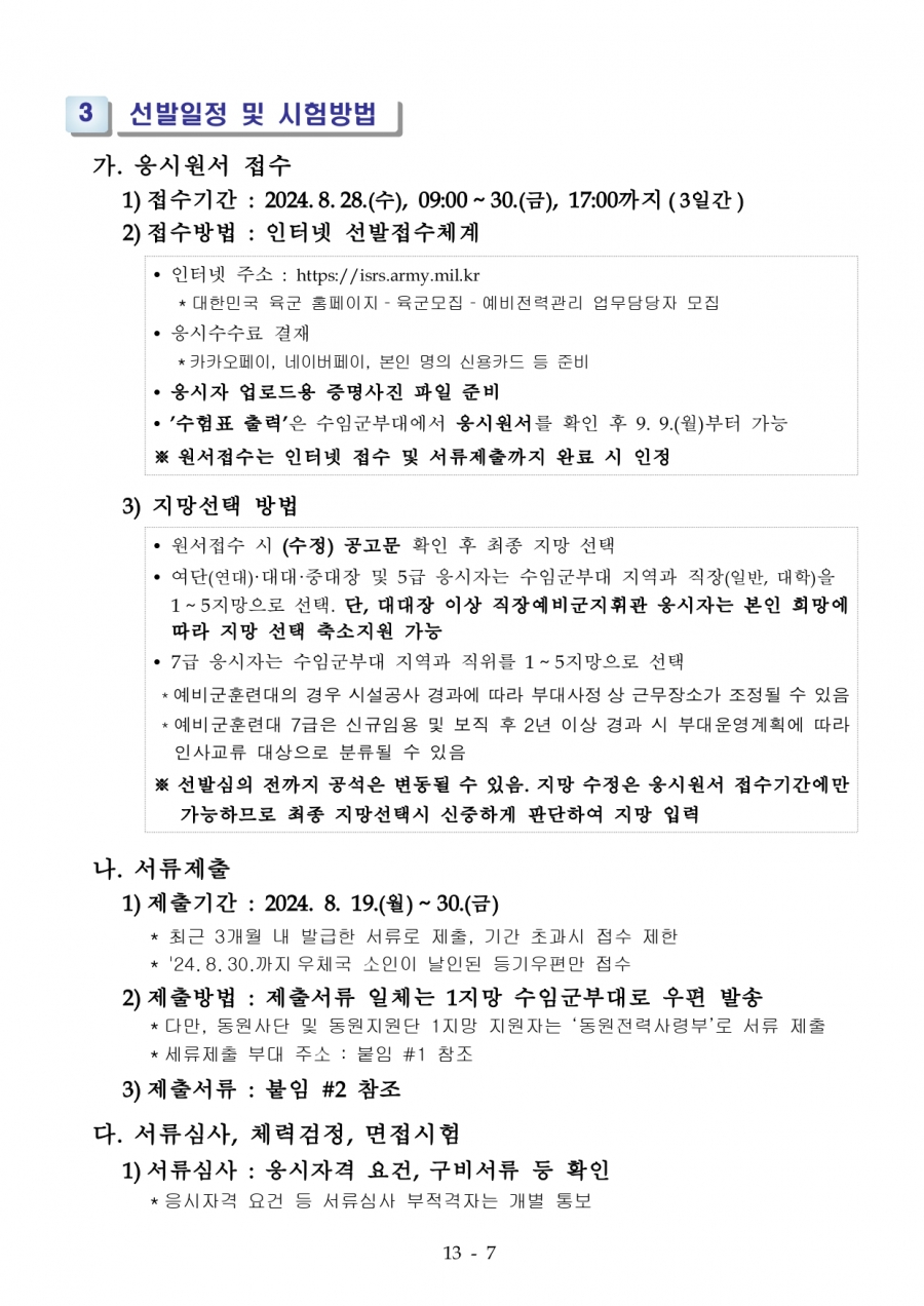 75회 육군 예비전력업무담당자 2차 수정공고