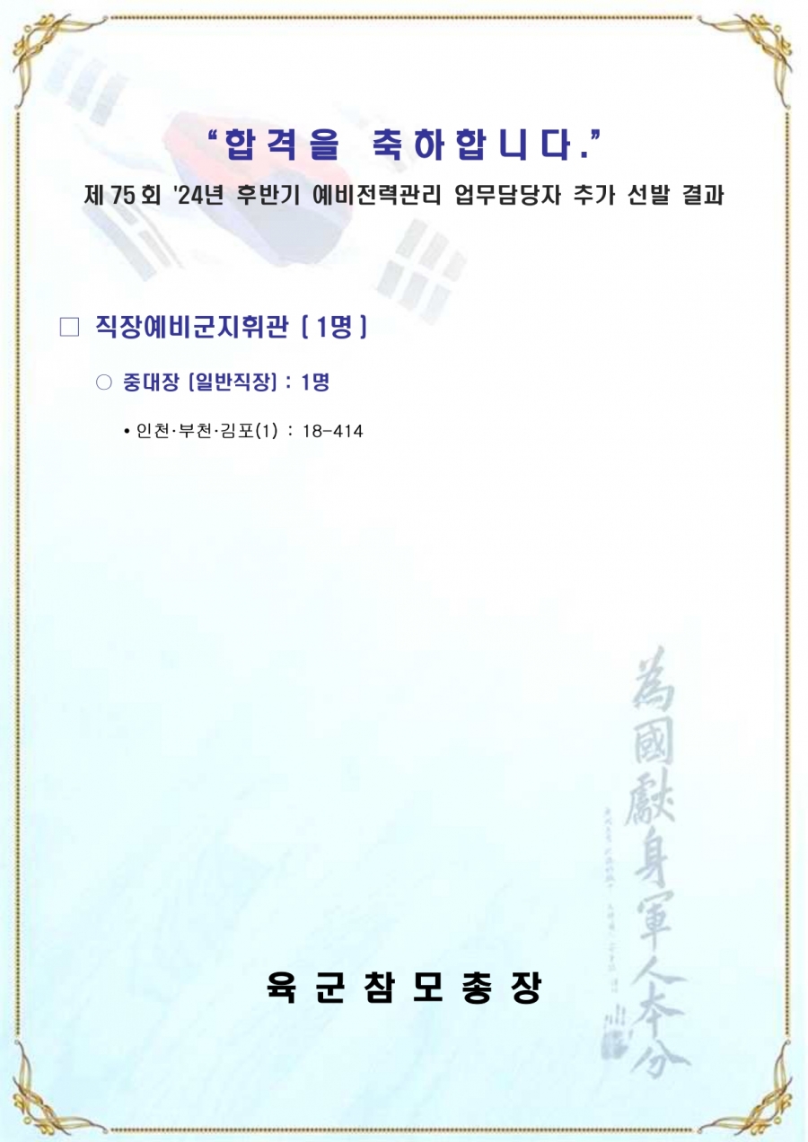 추가 합격자 입니다. 진심으로 축하드립니다.