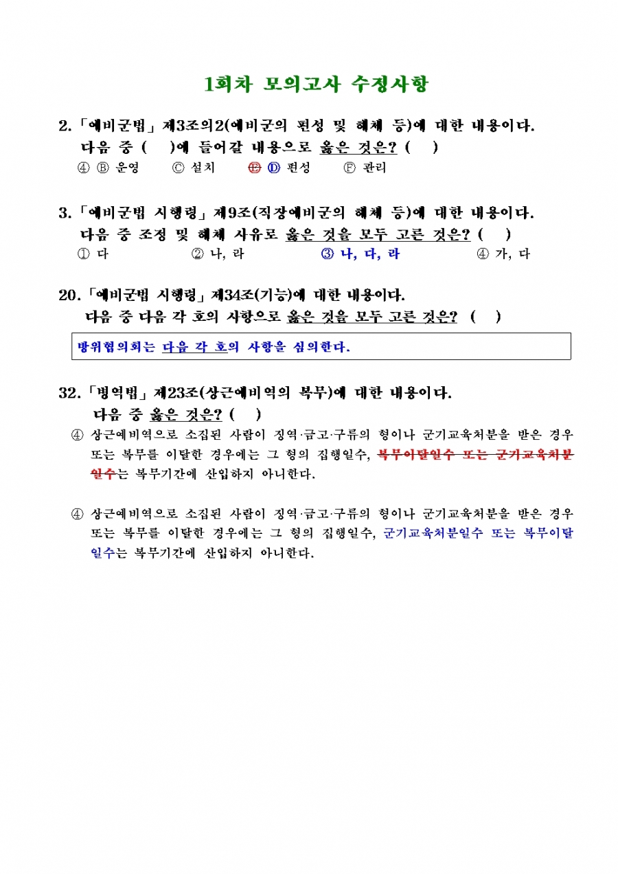 2회 모의고사 해설 및 통합방위법(5)~(6) 강의 탑재완료
