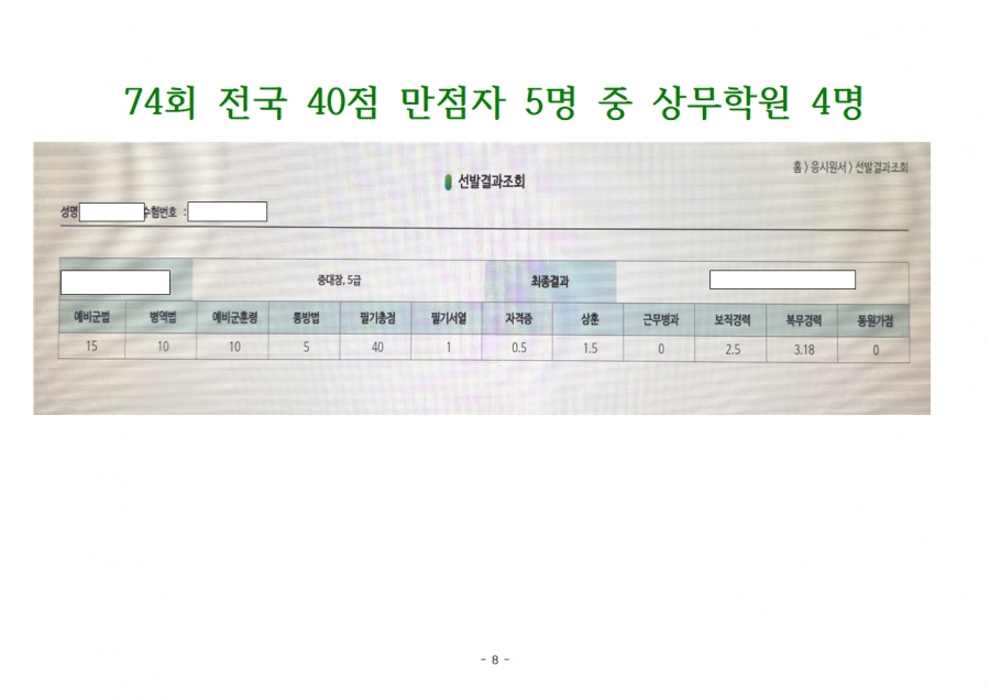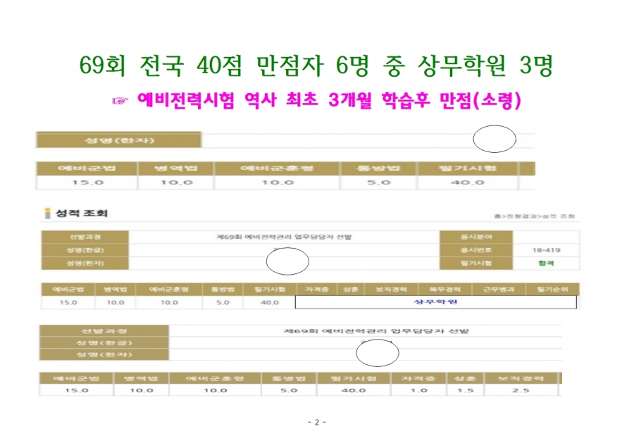 75회 상무학원 응시인원 및 수험번호 말씀해 주세요.
