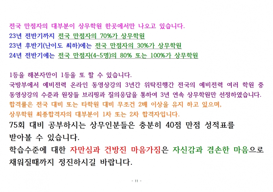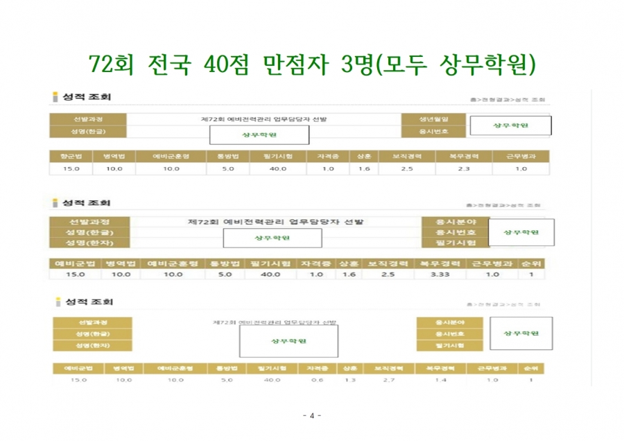 상무와 함께라면 누구나가 40점 만점 받을 수 있습니다.