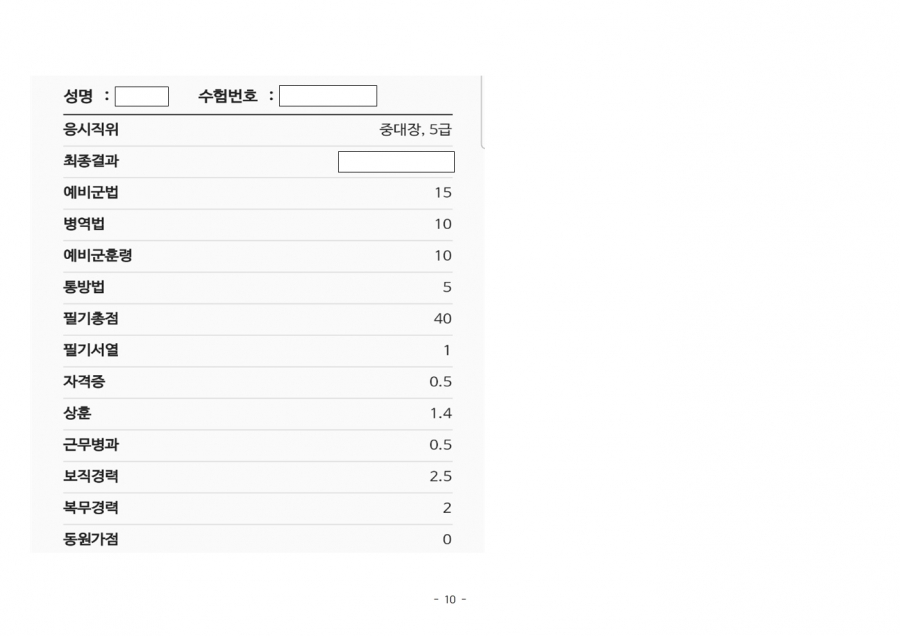아래의 40점 만점 성적표를 자신의 것으로 만드시길 바랍니다.