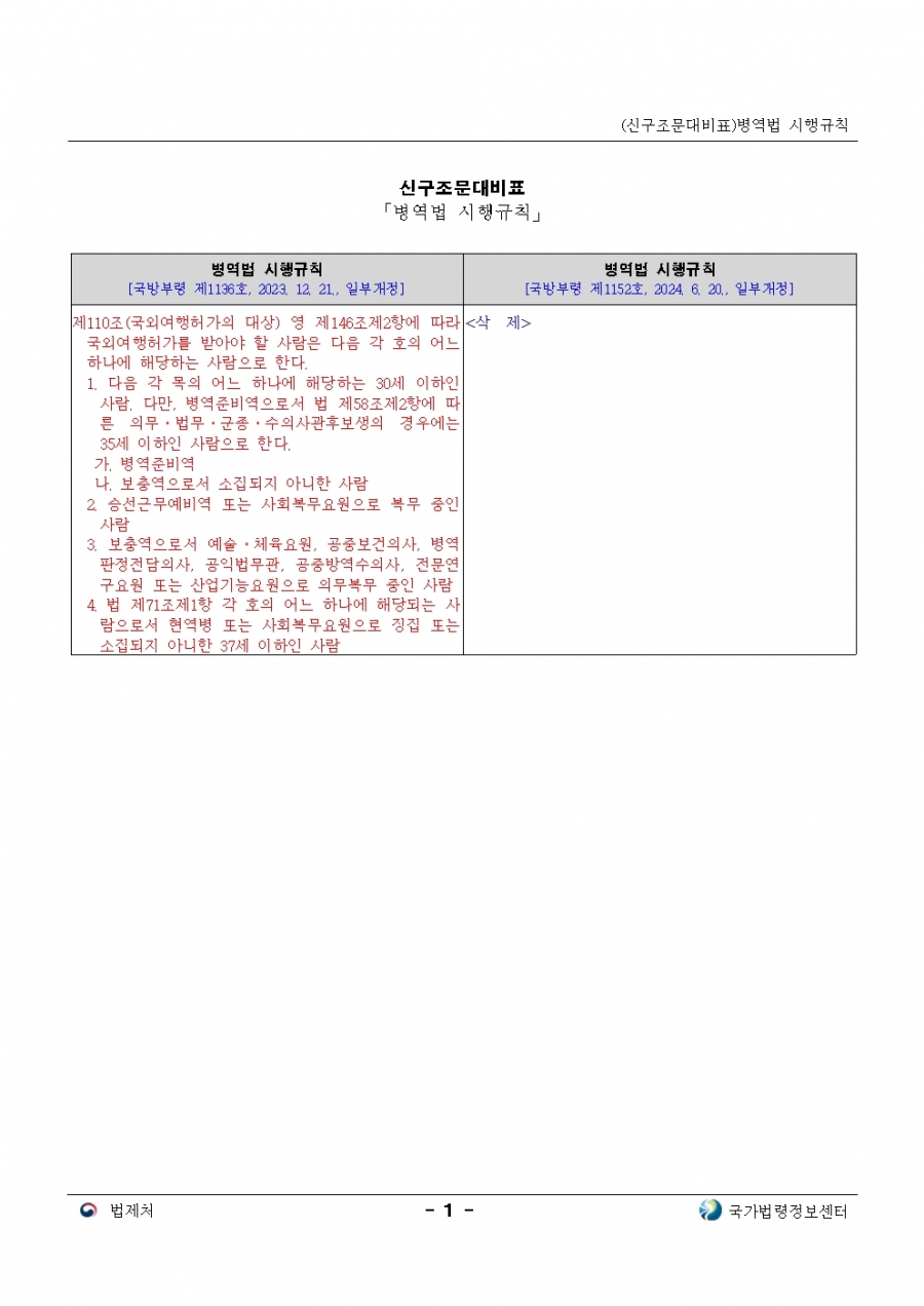 병역법 시행령 개정(시행일 : 24. 7. 10, 25. 1. 3)