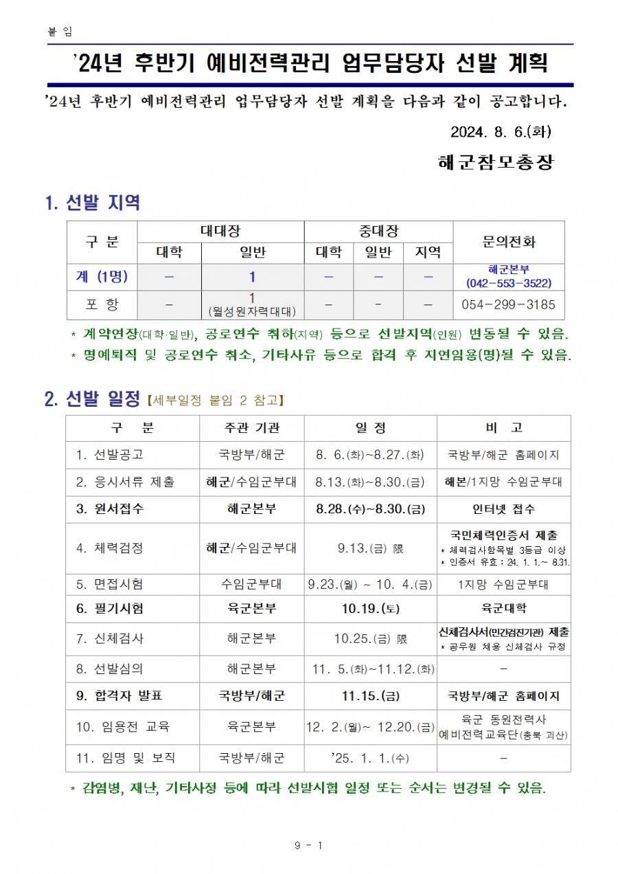 24년 후반기 예비전력관리 업무담당자 선발 계획.hwp