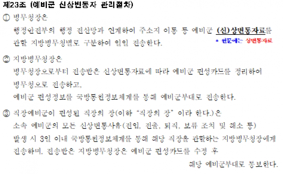 조편운 훈령 개정(25. 11. 14) 후 23조, 24조 관련 오탈자 등에 대하여 국방부에 알려 주었는데 정상적인 절차(개정, 시행) 무시하고 몰래 수정하여 개정 및 시행 날짜(25. 11. 14) 그대로 법제처에 수정해 놓았네요. ^^ 쉽게 대충 생각하는 업무와 무능함에 다시한번.... ^^