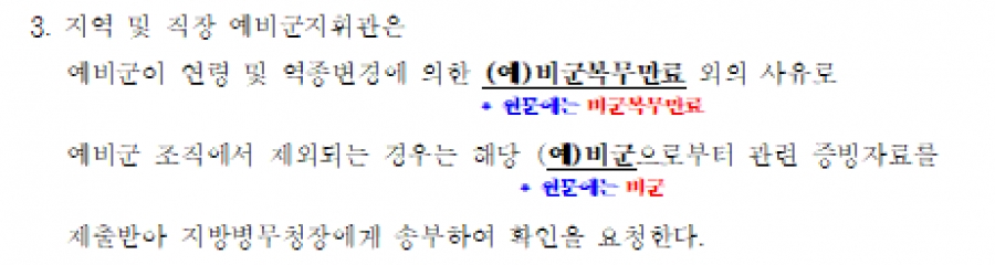 (예)비군복무만료를 예비군복무만료로....