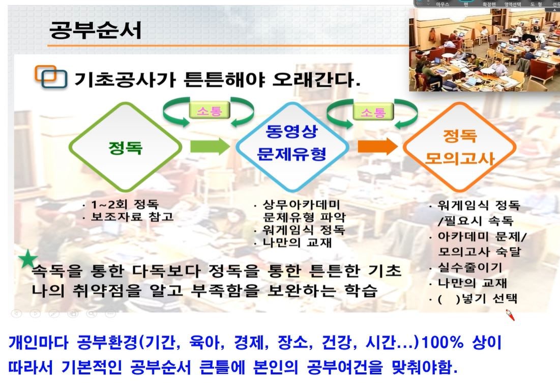 원문교재 정독을 중요시하고 어떤 분들은 주 2회 정독이 가능하다고 하셨는데