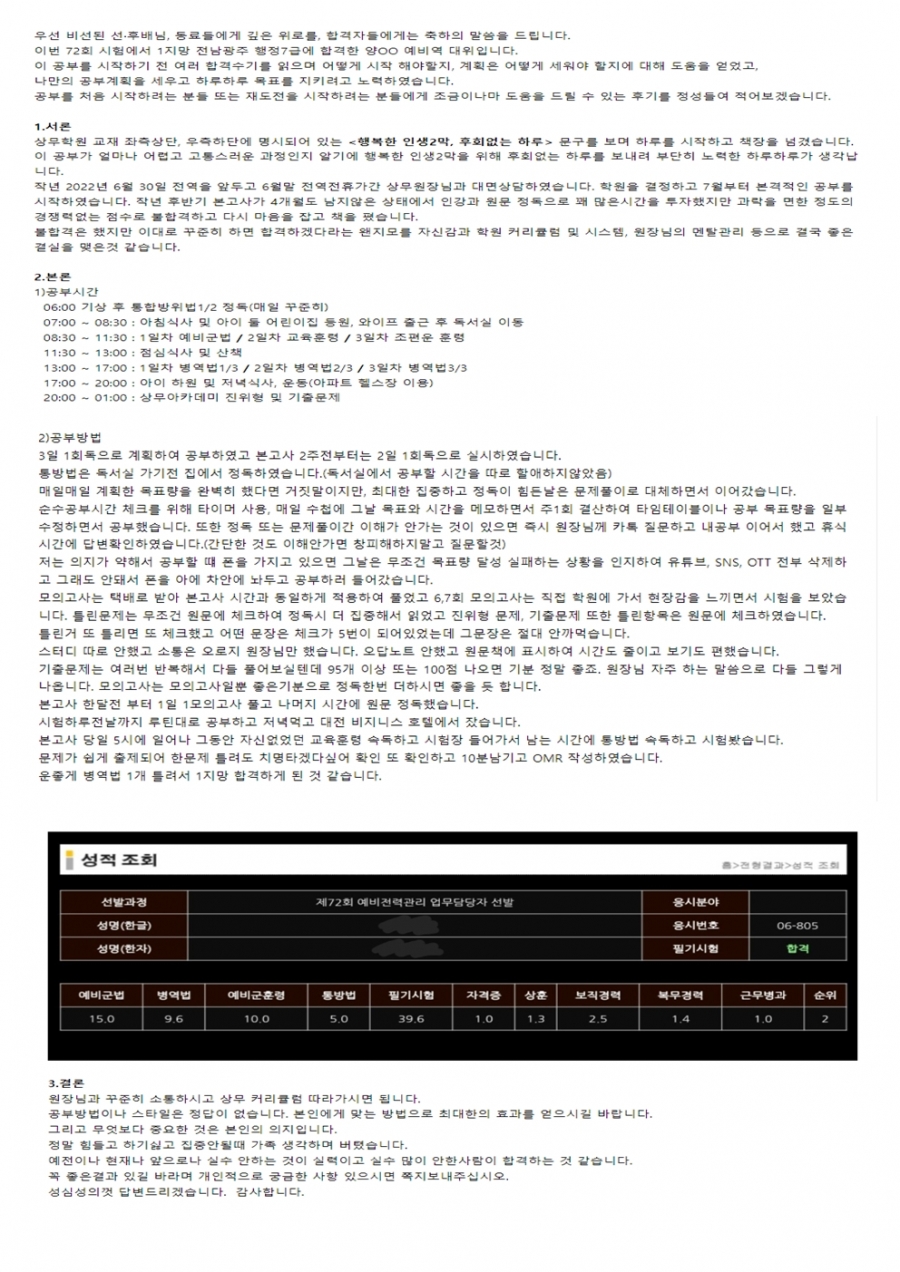 비선되고 6개월 더 공부할 자신이 있는가.... 상무를 믿고 정진하라.