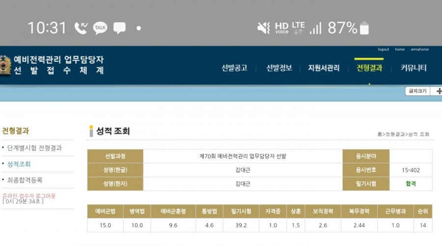 69회 발표나고 2일 방황하다가 원장님께 교재 다시보내달라해서 다시 강의듣고 공부시간도 조금더 늘리고 부족한 병역법과 훈령에 좀더 투자했습니다.