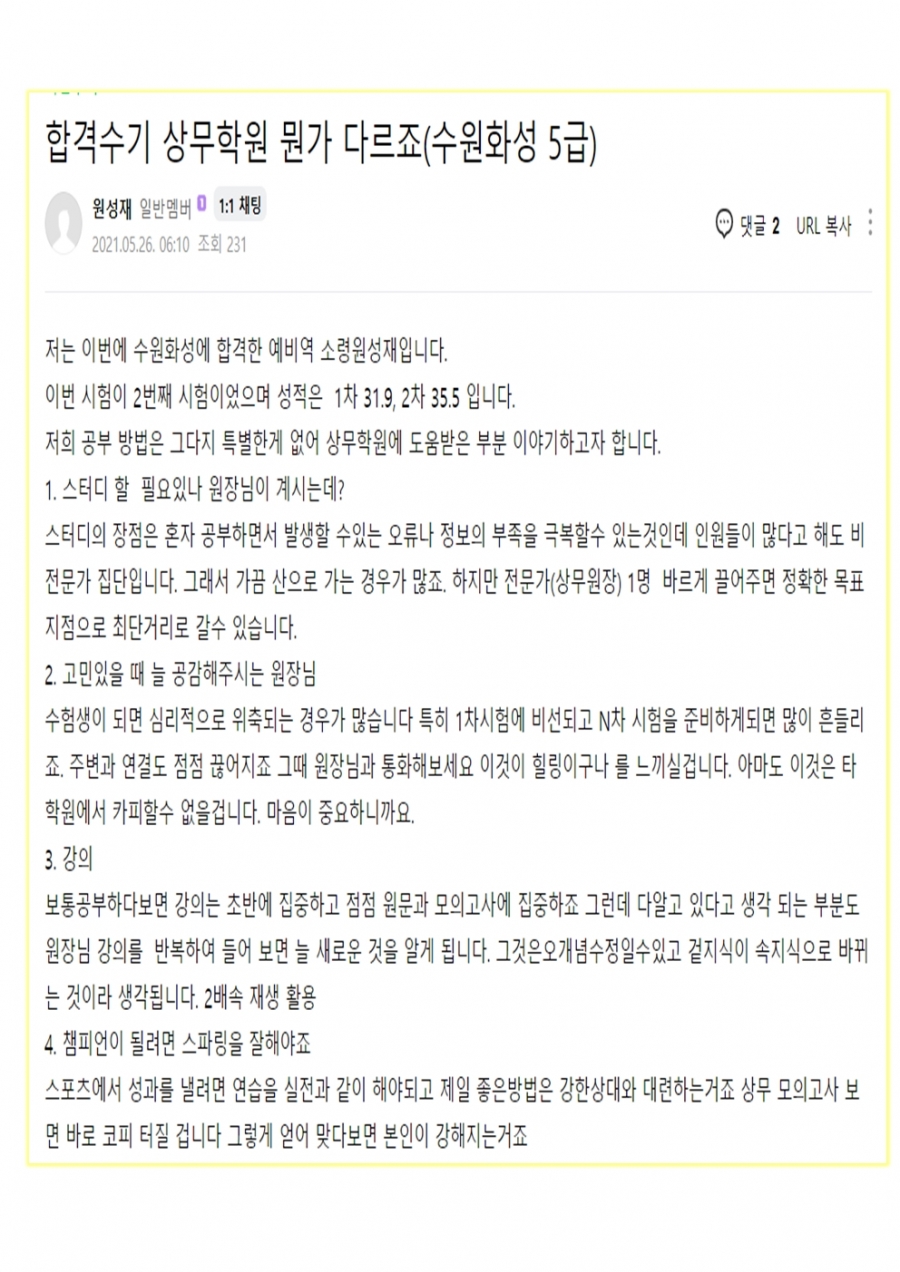 합격수기(학원마다 다른 내용은 개념정리 필요)
