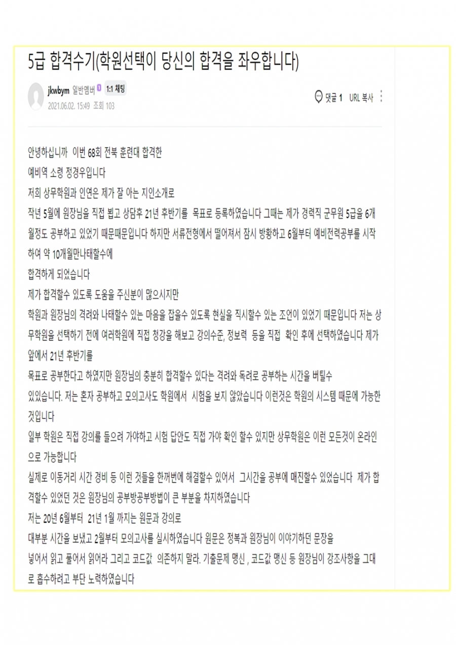 합격수기(학원마다 다른 내용은 개념정리 필요)